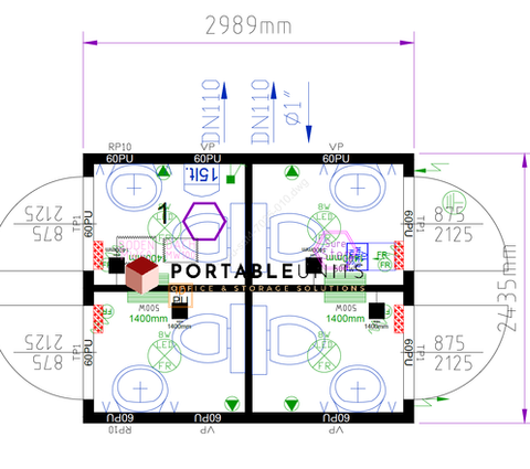 10FT TOILET CABIN WITH 4 SEPERATE TOILETS
